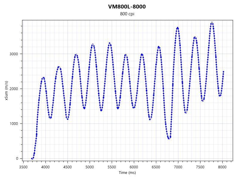 MouseTesterでセンサーの動作確認を行いました。布製マウスパッドおよびガラスマウスパッドでも問題なく動作します。